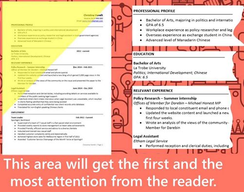 (Hình ảnh từ “The Resume Golden Zone” của thầy Michael Healy – College Careers Consultant at La Trobe University).