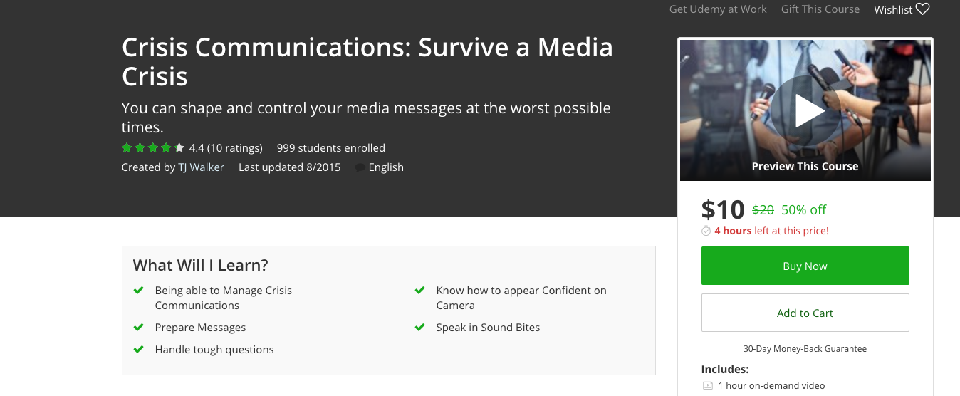 2. Crisis Communications: Survive a Media Crisis, Udemy