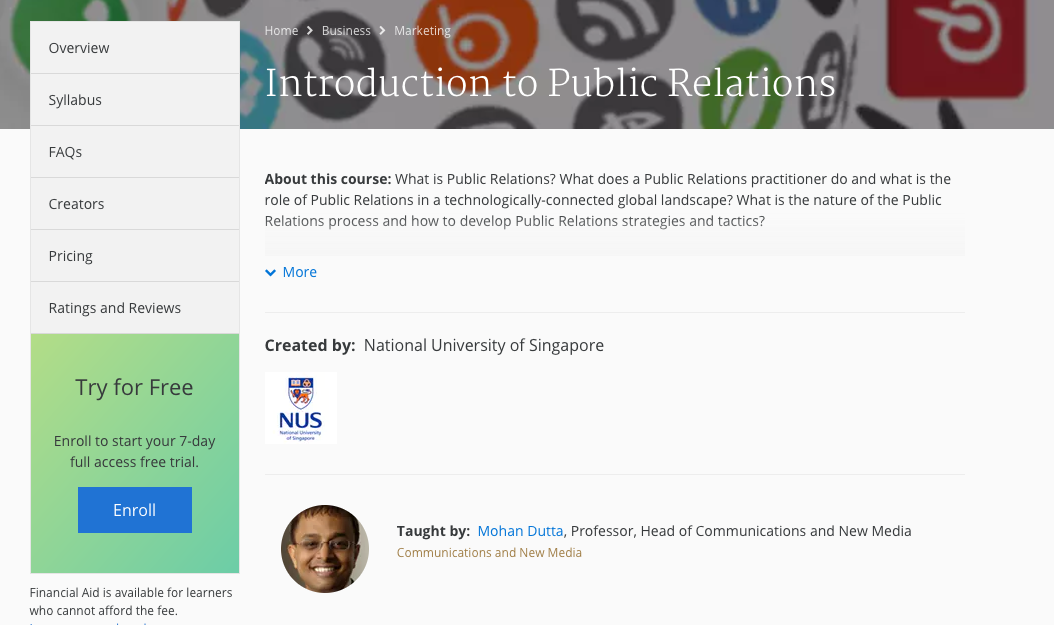 Bạn nào thấy hơi thích thích PR mà không biết PR là gì, có gì khác với Marketign hay quảng cáo thì có thể học khoá này, giống kiểu nhập môn ở trường đại học ấy.