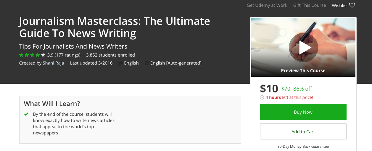 5. Journalism Masterclass: The Ultimate Guide to News Writing, Udemy