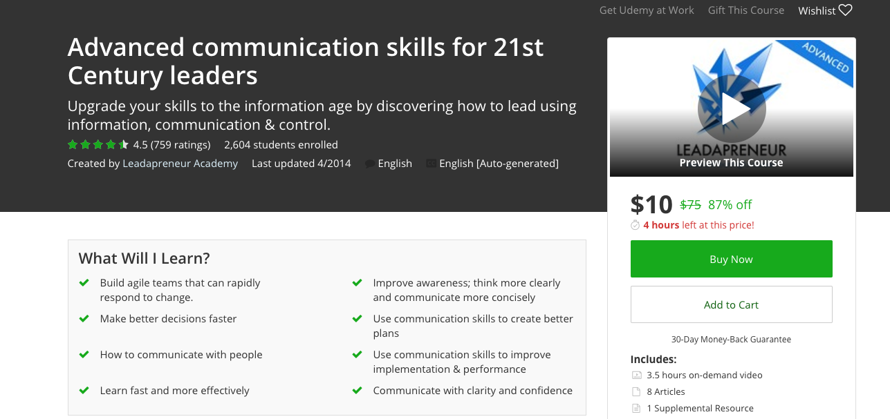 8. Advanced Communication Skills for 21st Century Leaders, Udemy