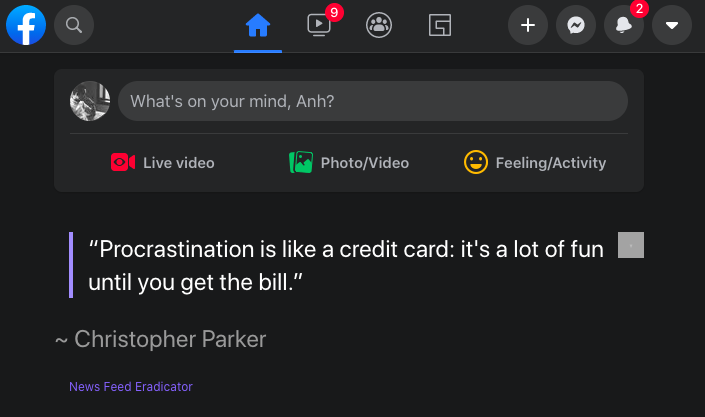 - Hay bạn đang dùng mạng xã hội để tránh phải làm những công việc khác? Nói cách khác là trì hoãn.