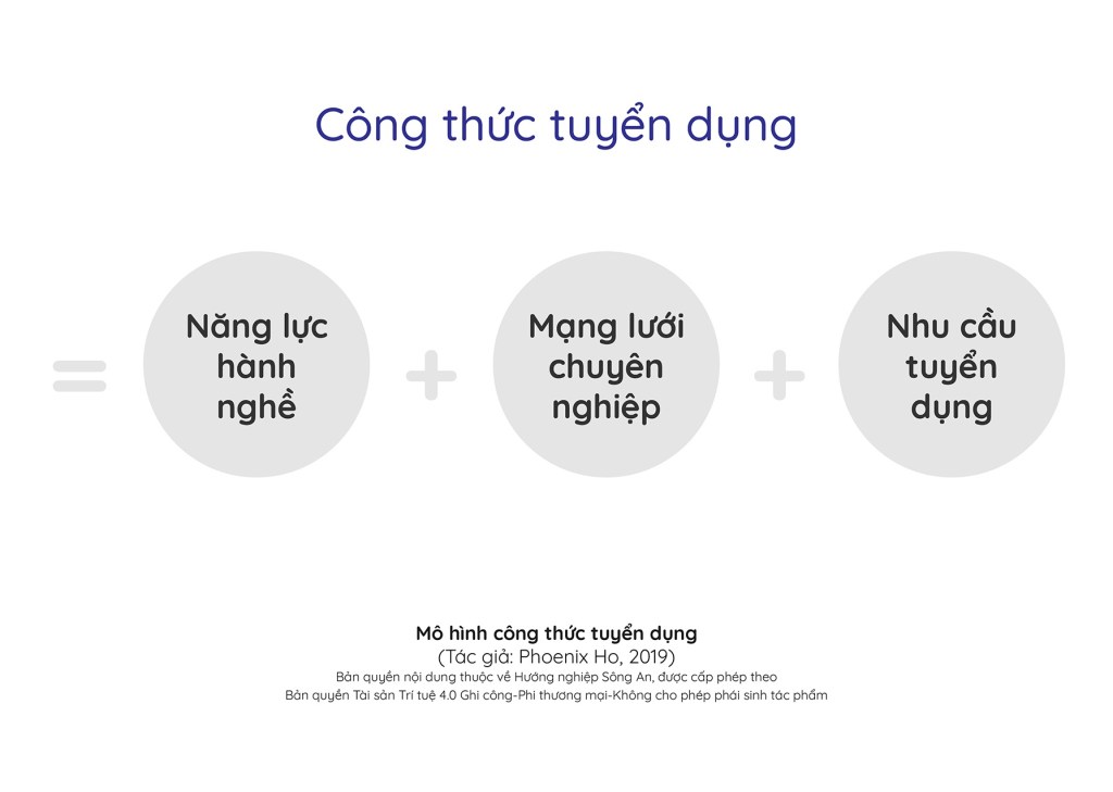 Ảnh trên là một “công thức” trong lý thuyết hướng nghiệp giúp bạn giải bài toán làm sao có việc làm tốt sau khi ra trường. Có ba yếu tố quan trọng bạn cần có: (1) năng lực làm việc là kĩ năng mềm và kiến thức học được (2) mạng lưới quan hệ bạn có và (3) thị trường lao động cần bạn. Thiếu đi bất kì một yếu tố nào trong ba yếu tố trên cũng làm giảm đi cơ hội cạnh tranh của bạn khi đi tìm việc.